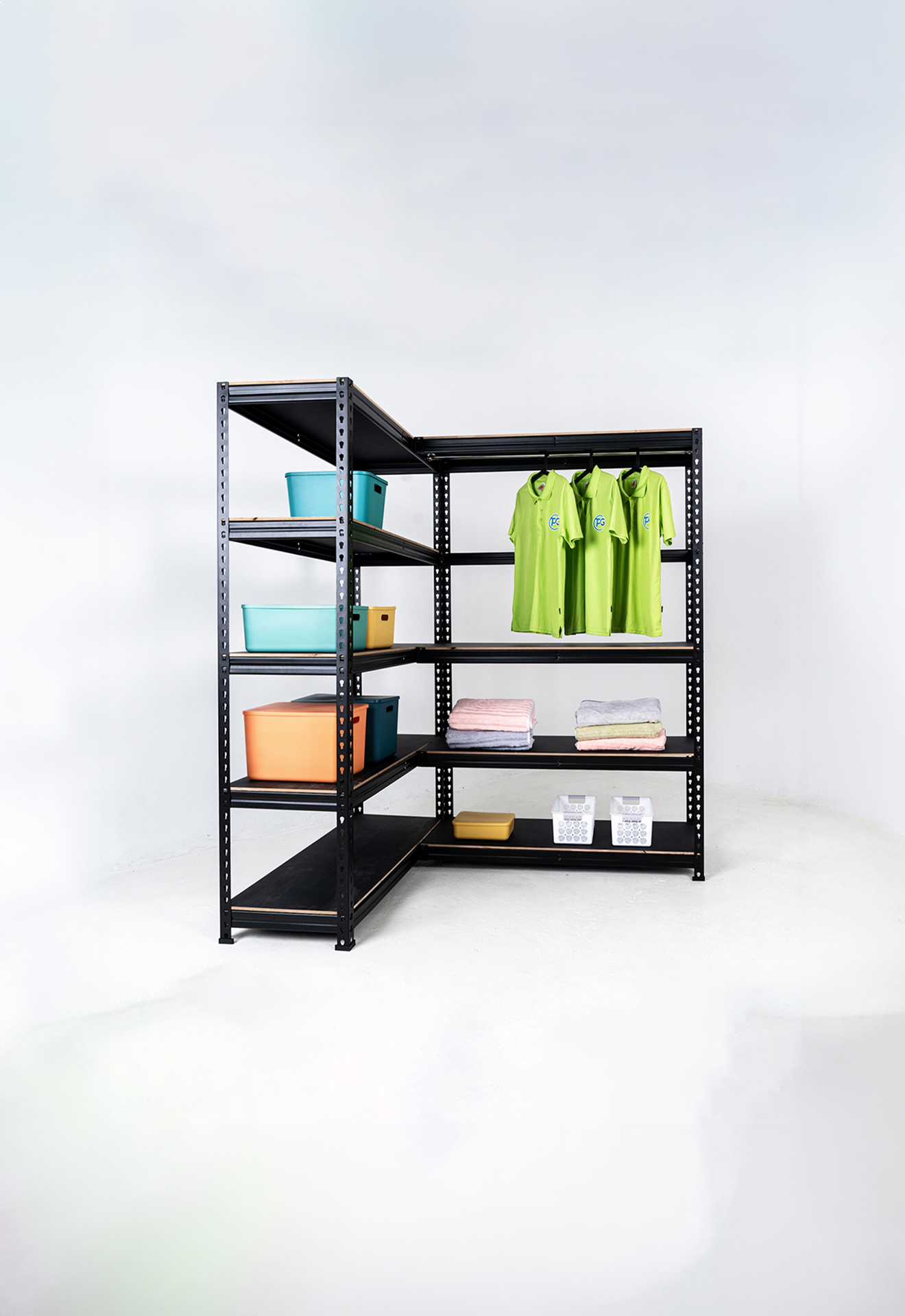 One of the key highlights of our L shaped boltless racks is to remove the centre beam, allowing for unobstructed corner storage and easier access to items.