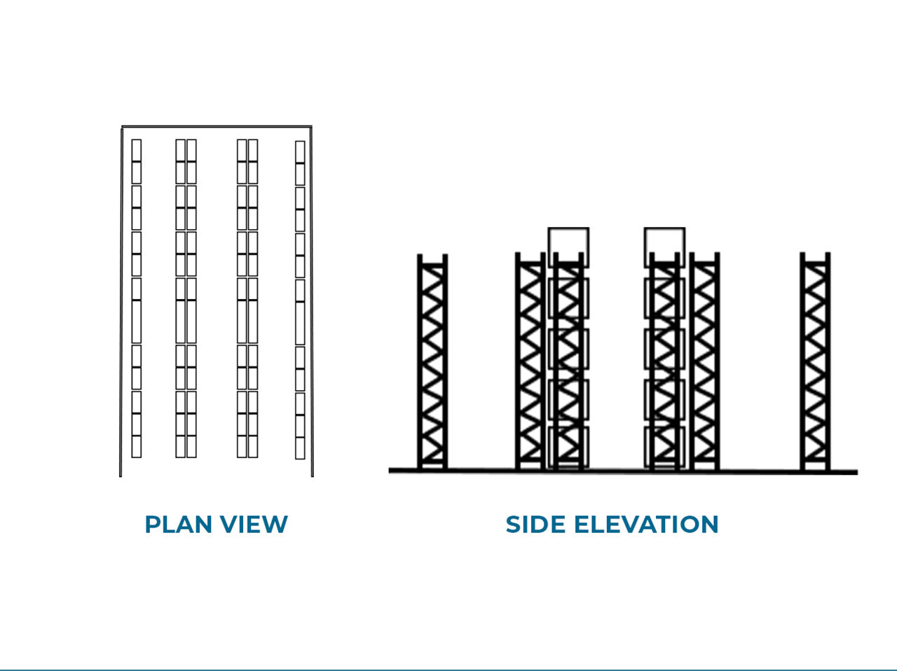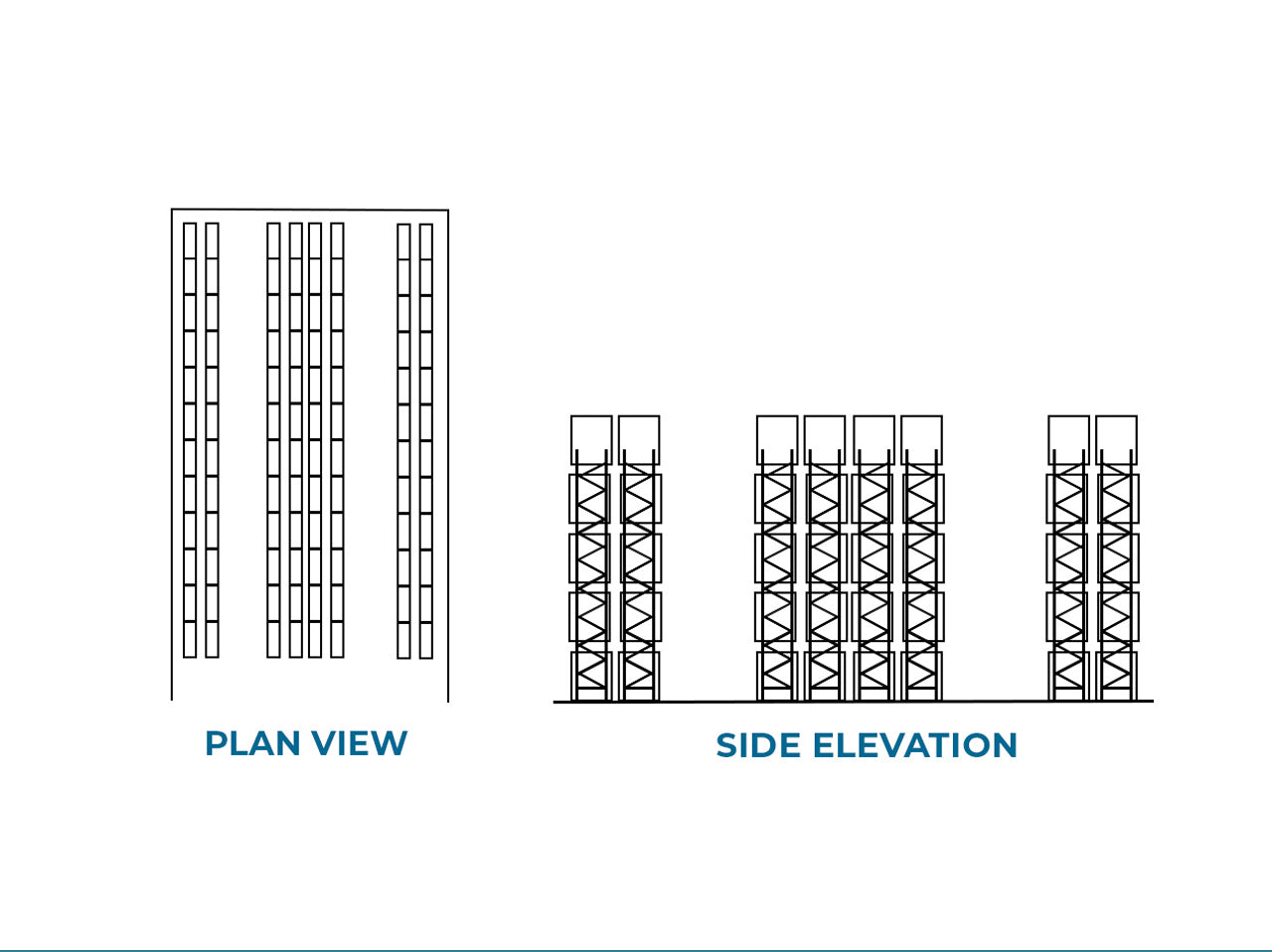 Created to offer maximum storage capacity by using only minimum space, this drive-in drive-through racking system consists of blocks undivided by aisles. This system is designed to efficiently suit the storage of homegeneous products in large quantity. Picking and storage is facilitated by forklift trucks driving right into the racks.